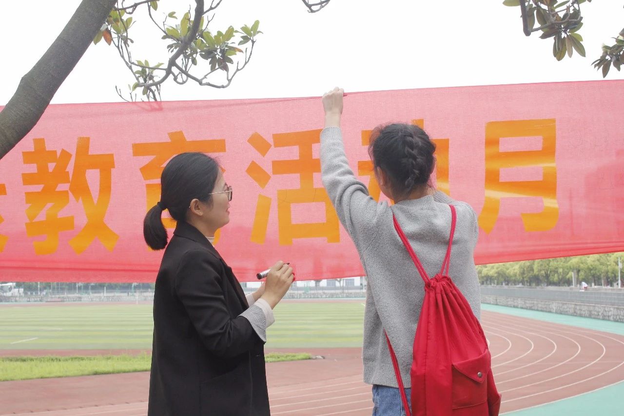 5月8日,在食堂门口,“525”大学生心理健康日主题教育活动开幕式举行。现场进行了“关爱健康,呵护心灵,身与心同行”签名活动。