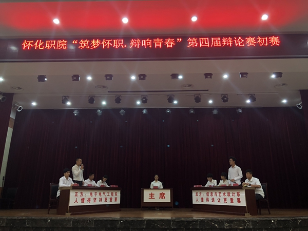2018年4月25日和26日两晚,学院第四届大学生辩论赛初赛在大会议室隆重开赛。辩论赛由院团委主办,主题是“筑梦怀职·辩响青春”。经过激烈的角逐,电子电气工程系、商贸管理系、建筑工程系和环境与生物科技系四个代表队以优异的表现从参赛的八个系部代表队中脱颖而出,获得参加5月9日晚复赛的资格。