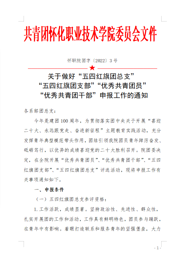 关于做好“五四红旗团总支” “五四红旗团支部”“优秀共青团员” “优秀共青团干部”申报工作的通知