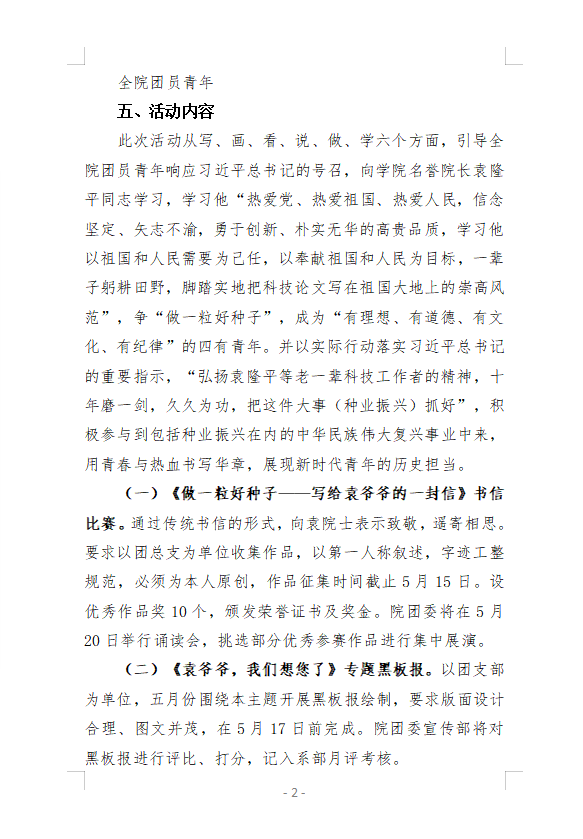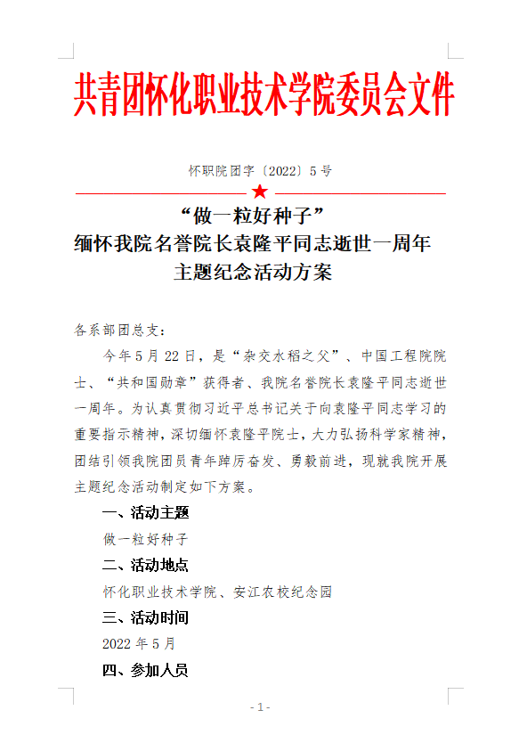 “做一粒好种子” 缅怀我院名誉院长袁隆平同志逝世一周年 主题纪念活动方案