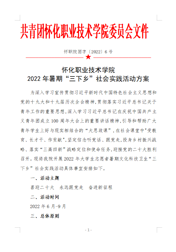 怀化职业技术学院 2022年暑期“三下乡”社会实践活动方案