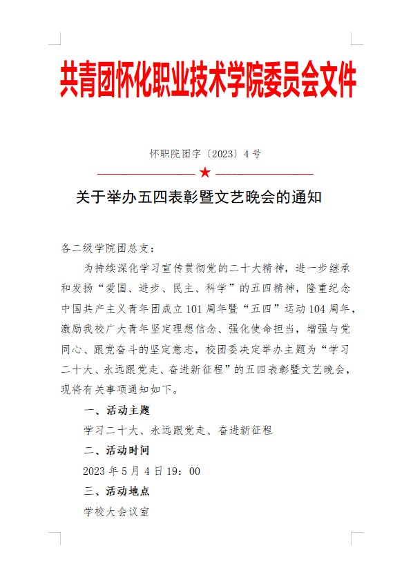 关于举办五四表彰暨文艺晚会